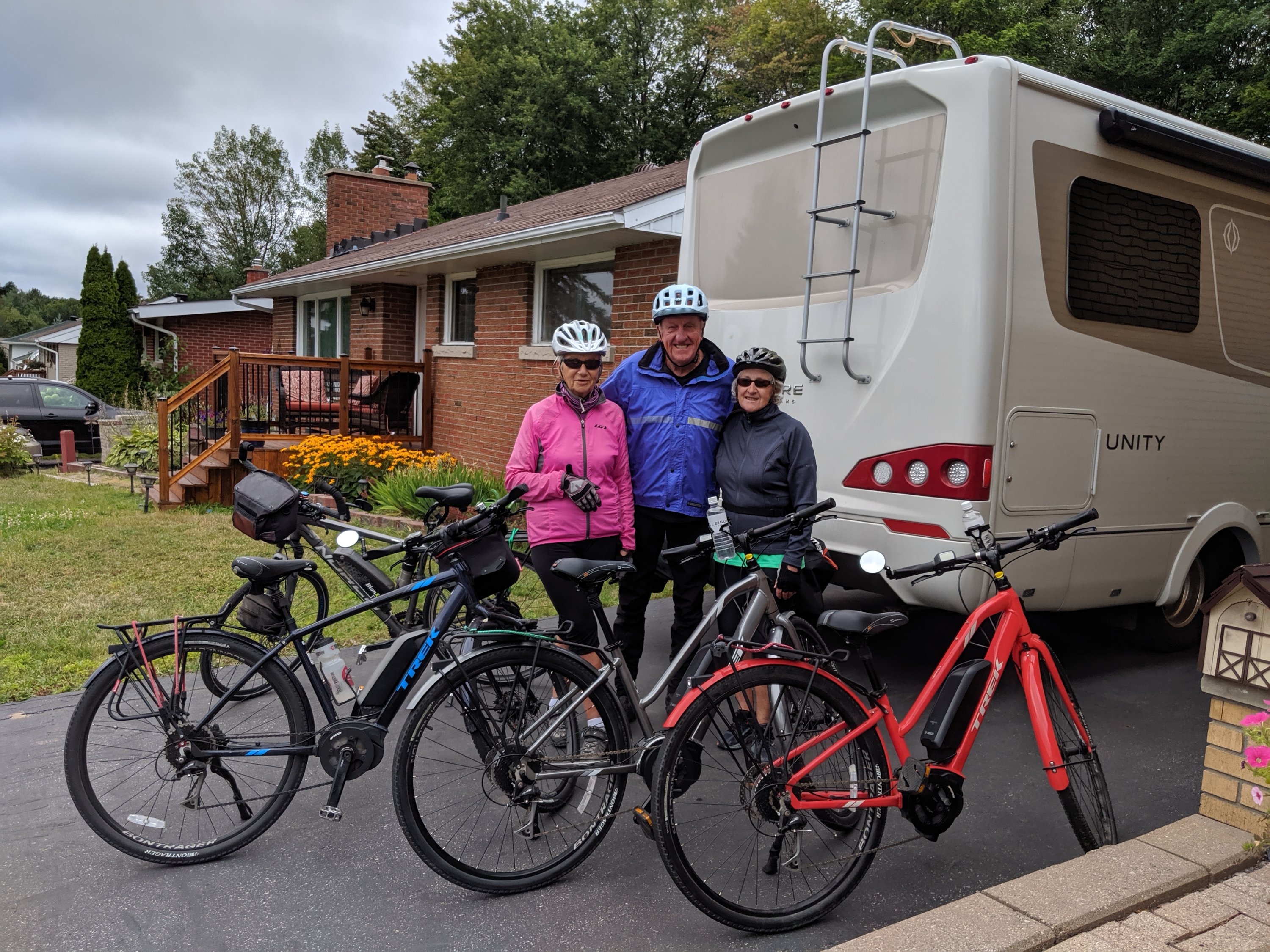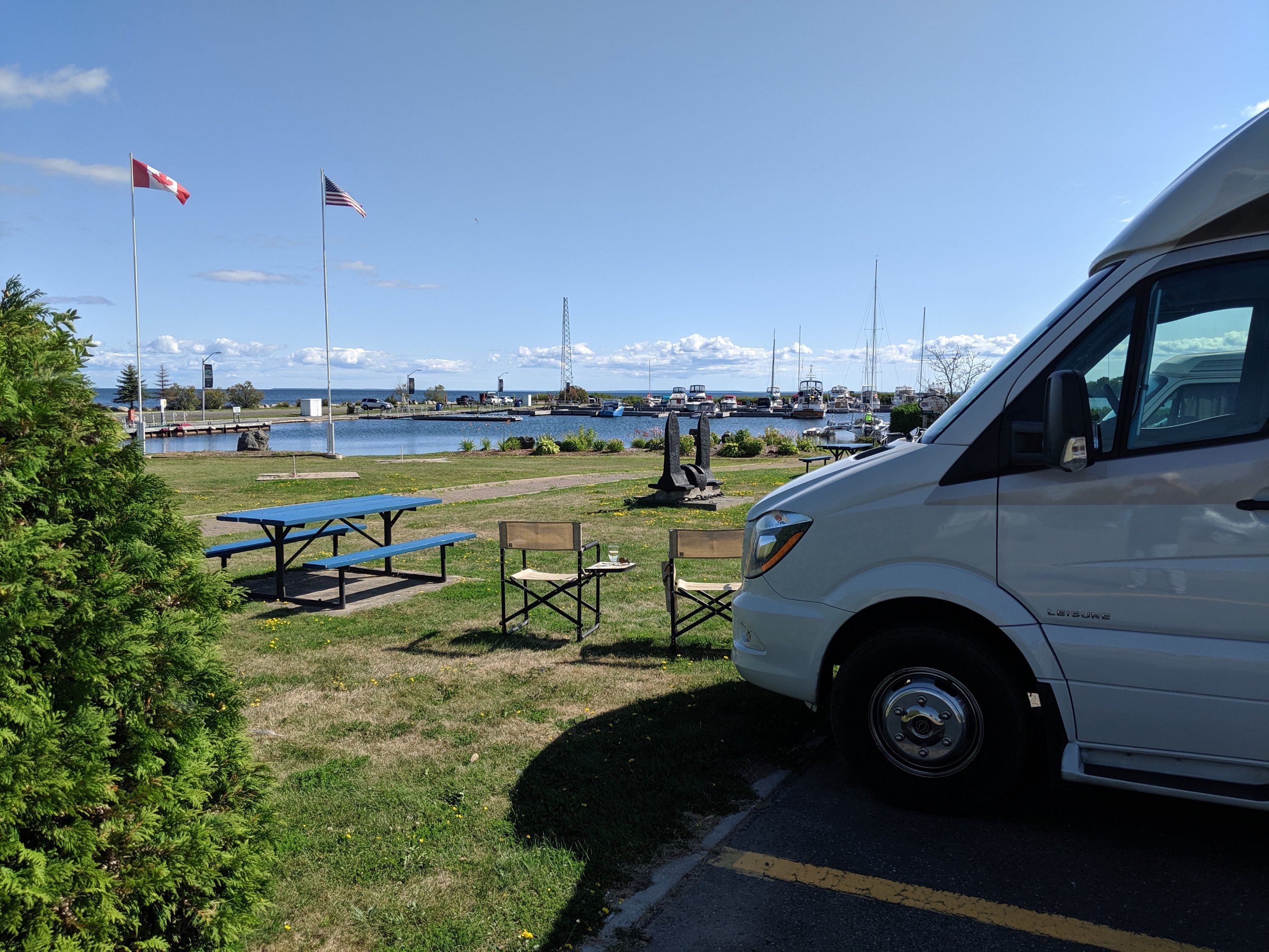 blog from Blind River, Ont. … After visiting with our ski buddies, ( Arne & Judy), for a couple days in North Bay, Ont, (and riding our bikes with them), we decided it was time to move on. So, we took off heading west on hwy 17.We stopped at a Ontario Prov Park campground, and enquired about a site and of course, how much. … $48.00 for one night with no hookups !… OUCH ! ..that hurts ! …So, we moved on and when we got to Blind Bay , Ont, we enquired at the visitors info office and the nice young lady said we should go to their Blind Bay Marina as they only charge, $10.00 with no hookups. So that is where we are spending tonight. Not only is it very inexpensive, but we have a wonderful view of the lake and all the boats tied up at the docks, right out our windshield window. GREAT !Plus they have very nice, extra clean showers at no extra charge.Tomorrow, we’ll take off again on our journey heading towards Thunder Bay and Kenora.We have a number of places we want to go before going home, including going thru the Kootenays, so, we don’t expect to be near home, til sometime near the middle to the end of September.Try as I may, I’ll send a couple pic’s. …ENJOY !P. S. … I may end up sending more pics later.Cheers, John