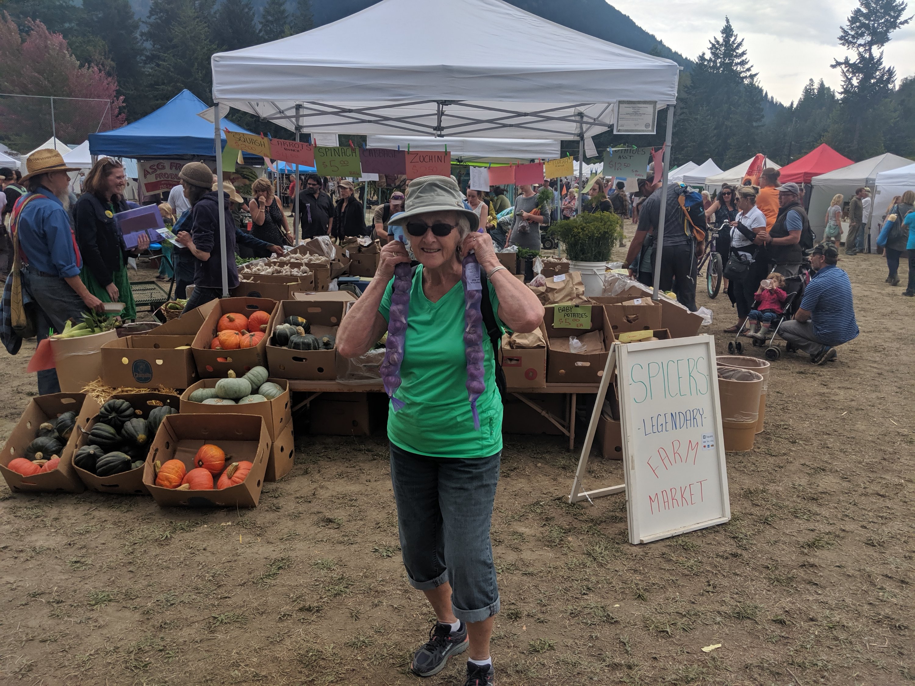 e’ll, we just spent the day at the garlic festival and it was certainly we’ll attended. That is until about 2 pm then the rain came down in bunches. A lot of hardy souls hung around until it let up a bit. We went to the campground and met up with a couple who I knew quite well from Silver Star. Then we went back to our mtr home. We’ll stay here tonight, then take off tomorrow for Nakusp, BC Here are a couple pic’s I took, not too good cuz of lighting.